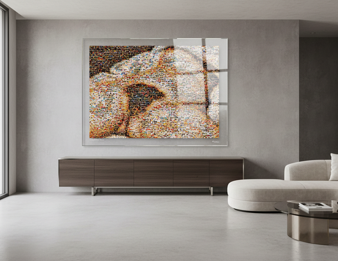 Je travaille souvent debout, longtemps, à manipuler, tester, déplacer chaque fragment d’image comme s’il avait un poids. C’est une forme de méditation active. Rien n’est automatisé. Chaque œuvre est composée à la main, pixel par pixel, avec mon œil, mon ressenti, mes doutes aussi.