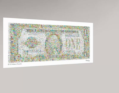 À première vue, $1 VS Children’s Drawings s’impose comme l’image familière d’un billet de 1 dollar, symbole universel de valeur, de pouvoir et de stabilité économique. Le regard reconnaît immédiatement ses codes : la figure de Washington, le vert profond, les ornements minutieux.